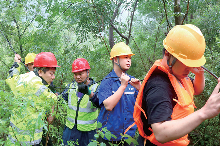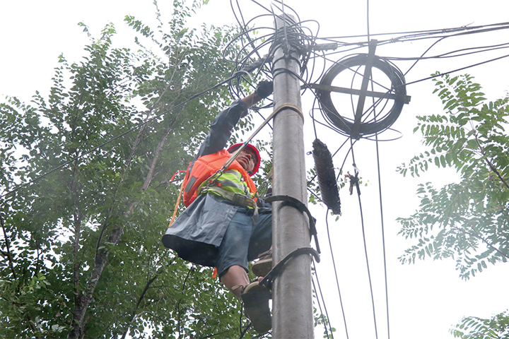 雨中 他們爭(zhēng)分奪秒維修通信線路
