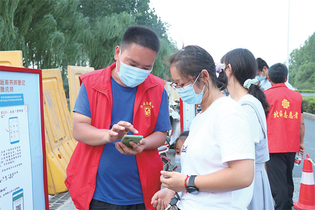 8月7日,濟(jì)源啟動全員核酸檢測。北海街道立即啟動應(yīng)急機(jī)制,集結(jié)機(jī)關(guān)干部及黨員志愿者奔赴核酸檢測點(diǎn)。凌晨、中午、傍晚、深夜……那一抹抹耀眼的紅色始終穿梭在檢測點(diǎn)的每個角落。