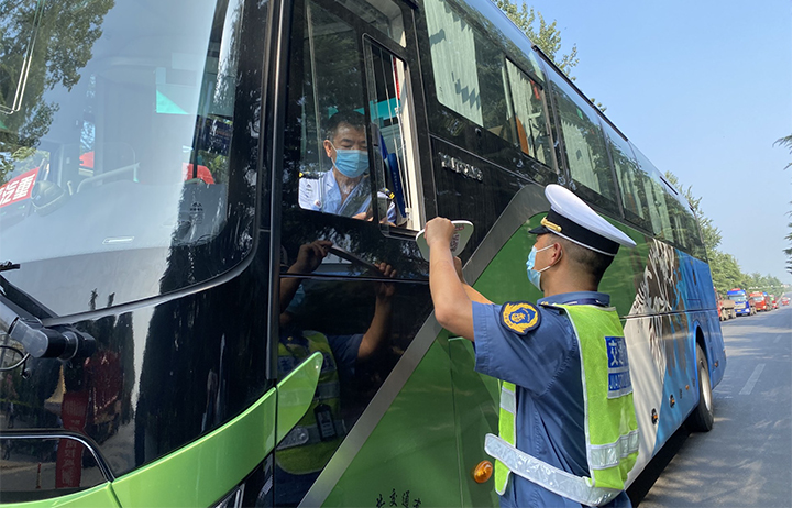 “請所有司乘人員用手機掃描健康碼和通信大數(shù)據(jù)行程碼,接受體溫檢測,謝謝配合!”8月6日下午,在坡頭與洛陽吉利交界疫情防控卡點,濟源市交通運輸綜合行政執(zhí)法支隊三大隊副大隊長袁新平與公安、衛(wèi)健委、屬地鎮(zhèn)等部門組成的疫情防控工作小組,正有條不紊地對進入濟源的車輛及人員進行登記檢查。