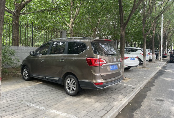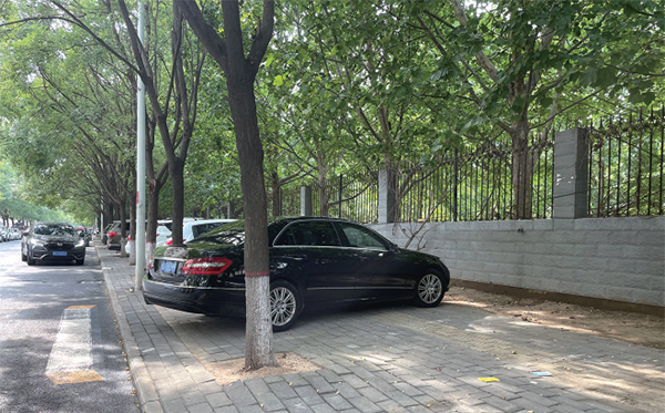 記者注意到,為了方便車輛通行,停放在周邊小區(qū)的車輛大多會將半個車身“騎”在便道上,盲道則被完全“壓”在了車下。