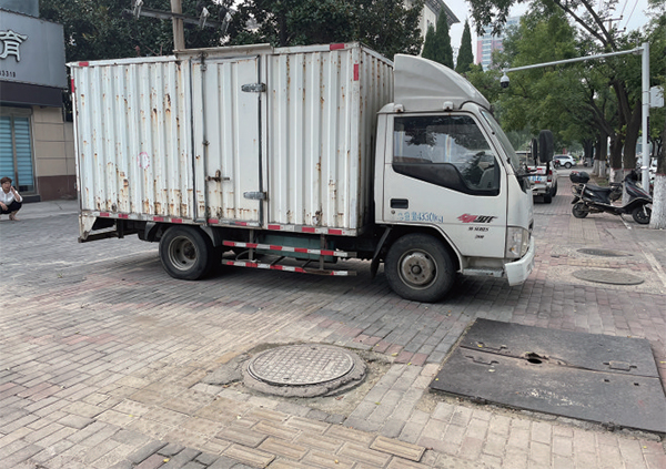 以上圖片為盲道被車輛占用情景