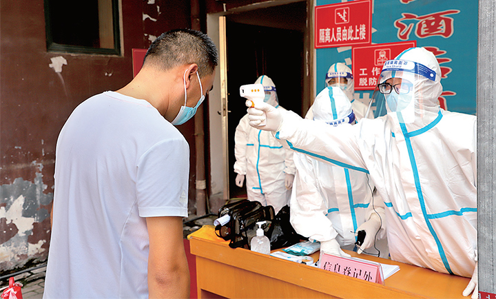 醫(yī)務(wù)人員對“隔離人員”測量體溫