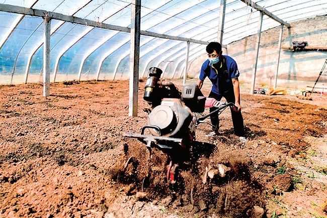種植戶對受災蔬菜大棚進行深翻深耕