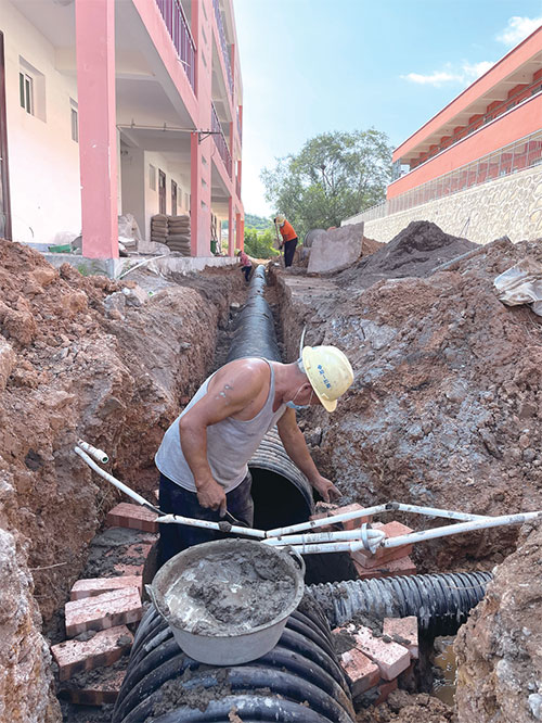 在王屋一中災(zāi)后重建現(xiàn)場,十幾名工人正在開挖溝渠,鋪設(shè)排水管道。“以前,山區(qū)校園建設(shè)中缺少排水系統(tǒng)。這是一個短板。這次災(zāi)后重建,我們側(cè)重于地下排水管道建設(shè),高起點設(shè)計、高標(biāo)準(zhǔn)規(guī)劃、高質(zhì)量施工,確保汛期校園排水暢通,提高安全系數(shù)。”王屋中心校校建負(fù)責(zé)人侯永和介紹。