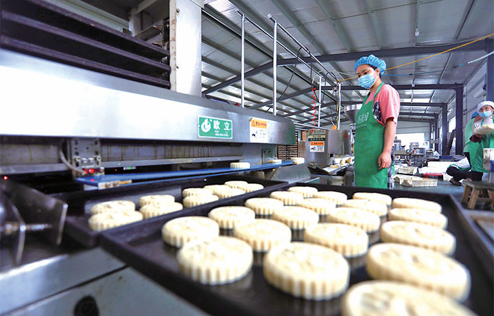 9月6日,在濟(jì)源市西湖食品廠,員工正在加緊制作月餅。記者 李楠 攝