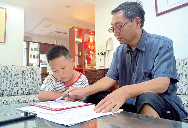 李惟波(右)向?qū)O子講述歌曲創(chuàng)作歷程