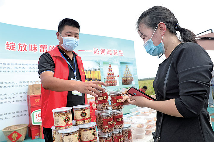 “這些產(chǎn)品都是咱自己加工的,新鮮美味,歡迎品嘗!”在沁河灘花生展臺(tái)前,五龍口鎮(zhèn)留村黨支部書記兼村委會(huì)主任趙先鋒一邊展示著手中的產(chǎn)品,一邊向眾人熱情推薦。他說:“在沿沁河灘萬(wàn)畝花生基地里,我們村種植花生近兩千畝,從去年開始新上花生深加工項(xiàng)目,現(xiàn)有花生油、精品花生、五香花生等,深受大家的青睞?!?/p>