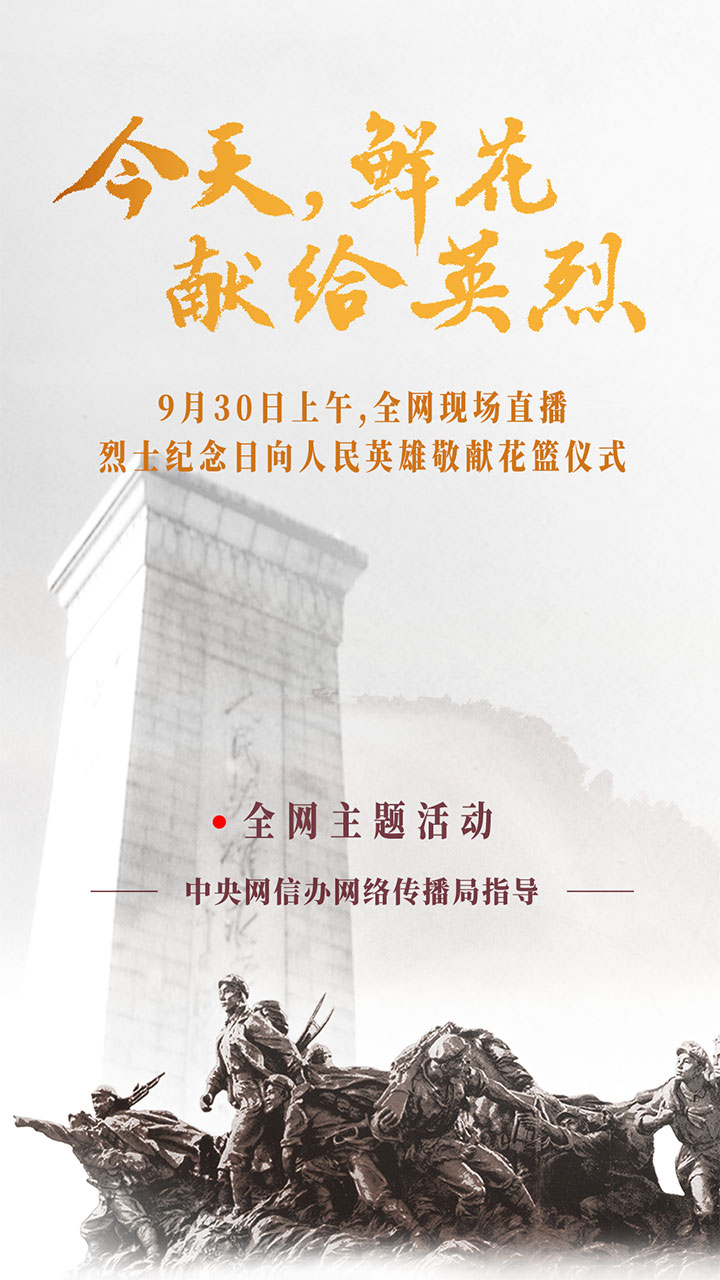 烈士紀(jì)念日向人民英雄敬獻(xiàn)花籃儀式9月30日上午舉行 習(xí)近平等黨和國(guó)家領(lǐng)導(dǎo)人將出席