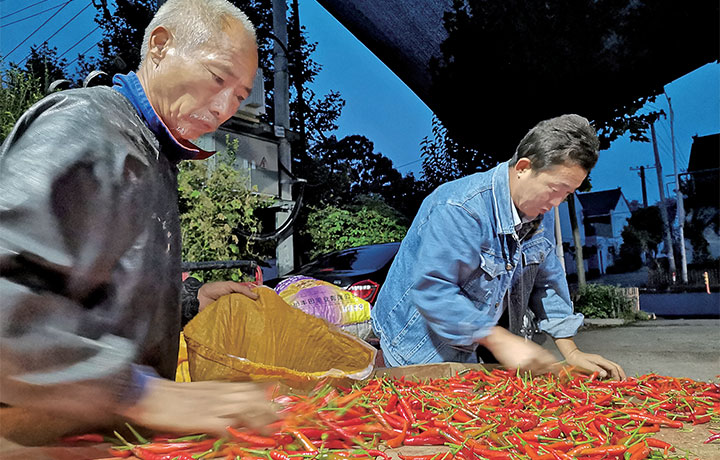 國(guó)慶假期,辣椒種植戶利用晴好天氣搶收辣椒,供應(yīng)市場(chǎng)。記者 秦磊磊 攝