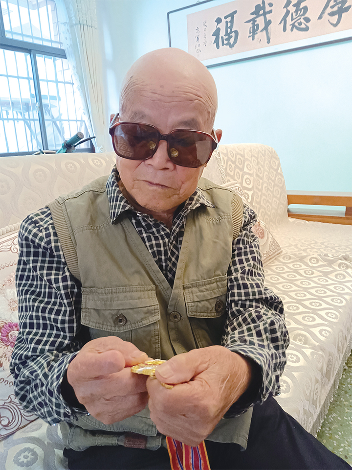 郭志強(qiáng)拿著中國(guó)人民志愿軍抗美援朝出國(guó)作戰(zhàn)70周年紀(jì)念章