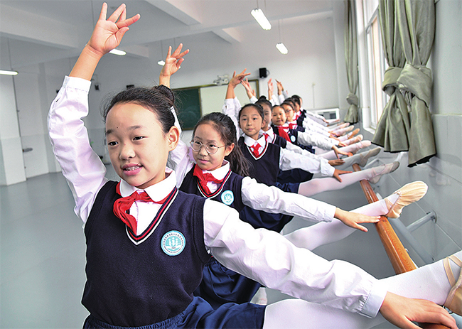 10月19日,濟(jì)源市東湖小學(xué)的學(xué)生在舞蹈排練室練習(xí)舞蹈。