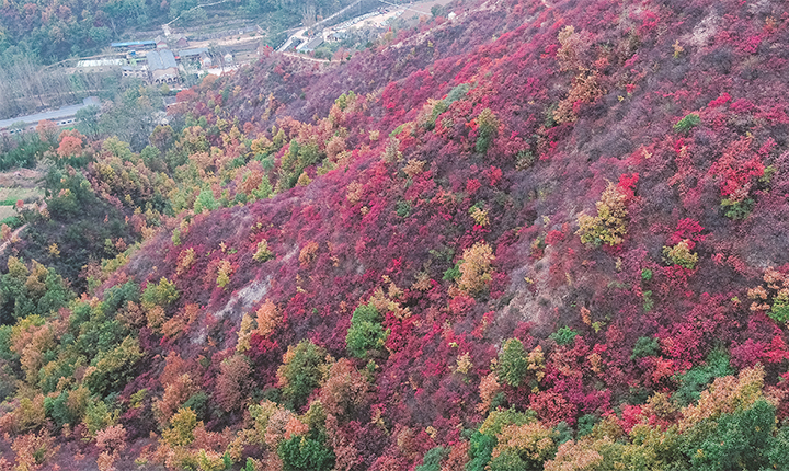 據(jù)了解,太行山紅葉主要由黃櫨、槭樹、楓樹等構(gòu)成,偶爾也有黃楊、柿樹點綴其中。山上的植被逐漸由綠變黃、變紅。放眼望去,滿山紅葉如霞似錦、如詩如畫。(記者 王興輝 文/圖)