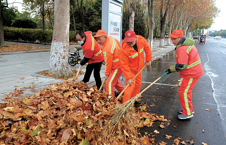 落葉蕭蕭下 環(huán)衛(wèi)工人清掃忙