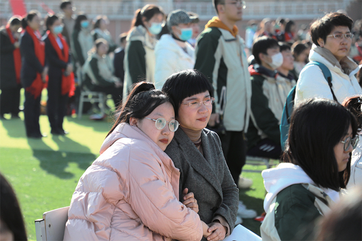 隨著十八響禮炮響起,家長和老師為學(xué)生戴上“成人帽”。學(xué)生帶著沉甸甸的囑托和祝福,走上紅地毯,集體穿過“成人門”,大步邁向希望的成功之門。記者 王莉 侯琪琳 通訊員 賀欣欣 攝