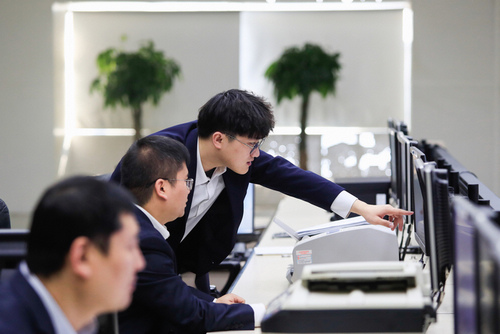 1月2日,河南濟(jì)源供電公司電力調(diào)度控制中心值班員張小強(qiáng)、王林密切關(guān)注電網(wǎng)運(yùn)行狀況,確保元旦期間電網(wǎng)安全和電力可靠供應(yīng)。(衛(wèi)凱)