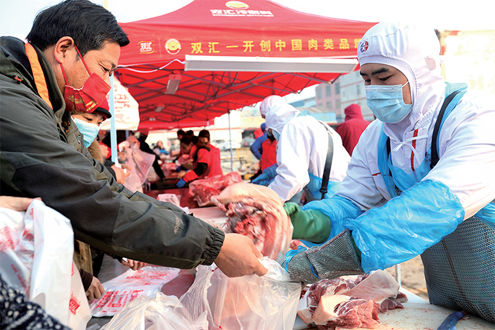 1月18日,市民正在選購冷鮮肉。