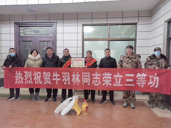濟(jì)水街道為立功受獎(jiǎng)現(xiàn)役軍人家庭送喜報(bào)