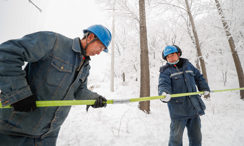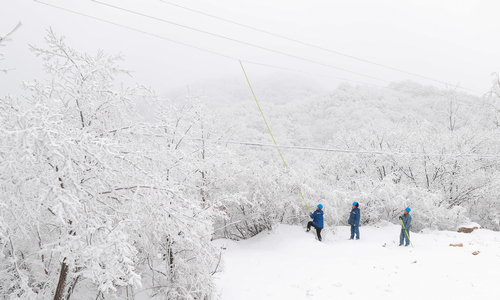 1月22日,濟(jì)源供電公司組織搶修人員在思禮鎮(zhèn)水洪池村處理10千伏鄭坪線水洪池支線線路覆冰隱患,保障山區(qū)群眾用電。衛(wèi)凱 楊戰(zhàn)營 攝