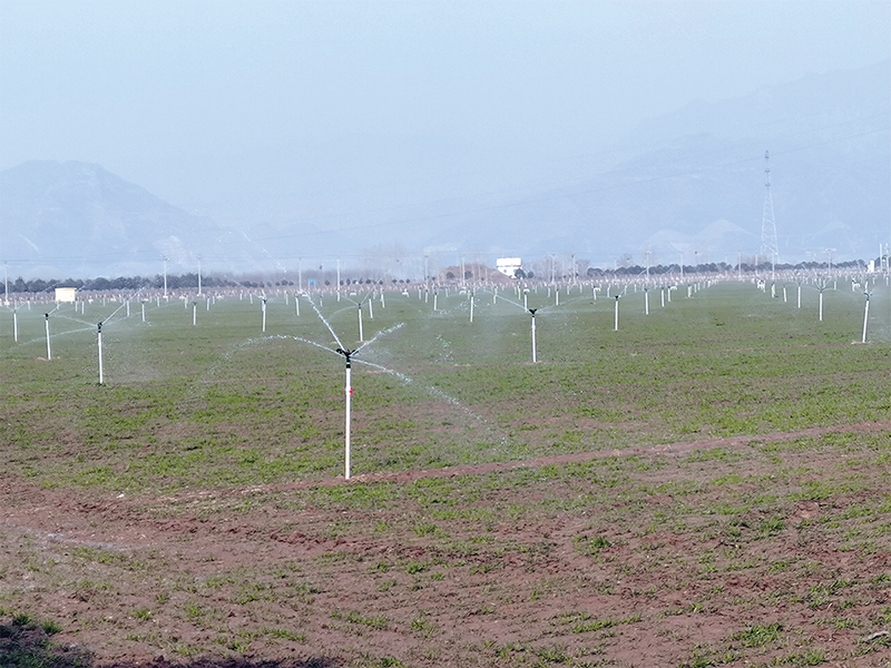 2月10日,在五龍口鎮(zhèn)留村的麥田里,噴灌設(shè)備正在作業(yè)。記者 張佩佩 王虎軍 攝