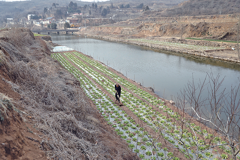 2月10日,坡頭鎮(zhèn)農(nóng)民在清澗河畔管理制種白菜。