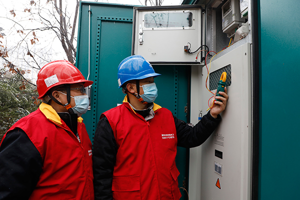 2月27日,濟(jì)源供電公司計(jì)量中心工作人員對(duì)升龍城配電房的計(jì)量接線進(jìn)行檢查,保障客戶精確計(jì)量。張磊 攝