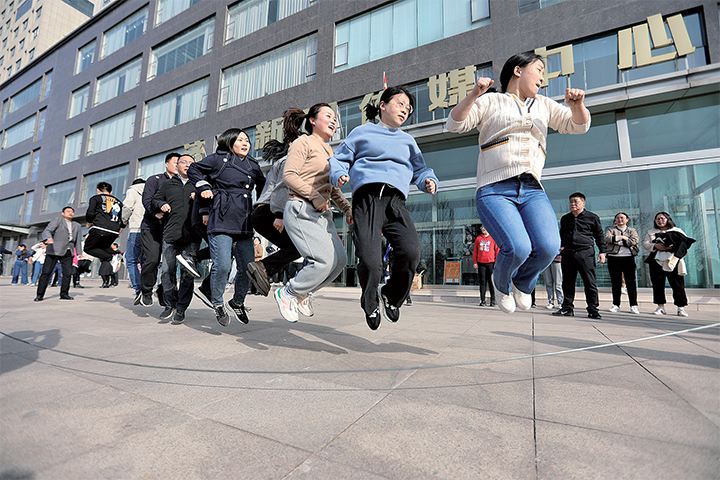 3月8日,濟(jì)源新聞傳媒中心的職工在參加跳大繩比賽。記者 李楠 實(shí)習(xí)生 喬鈺潔 攝