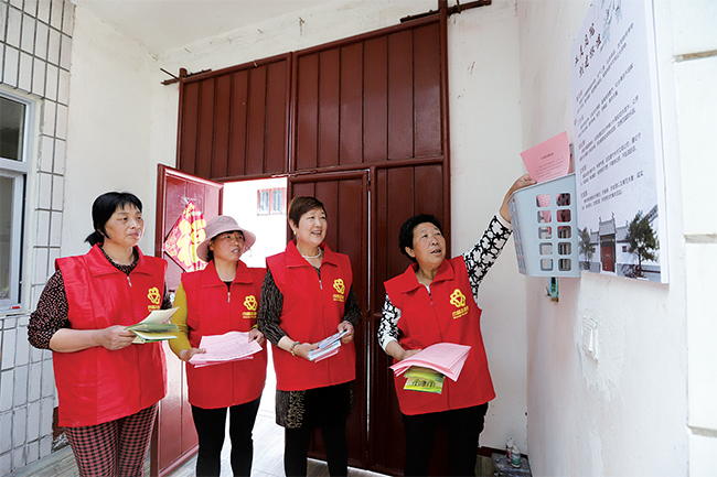 入戶發(fā)放“五美庭院”創(chuàng)建活動(dòng)資料(圖片由受訪者提供)