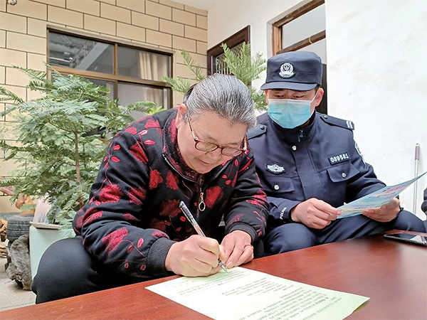 3月24日,西軹城村村民正在簽訂反詐防騙承諾書。