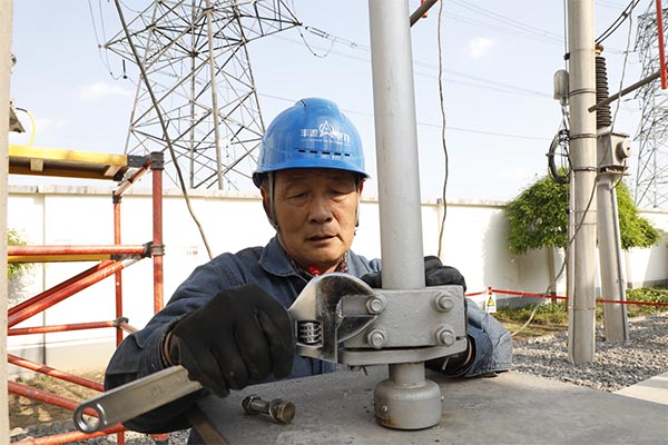 4月18日,濟源供電公司工程人員對220千伏荊華變電站110千伏II荊騰1斷路器的三相導線進行連接。濟源供電公司科學制定改造方案,調(diào)集精干力量,優(yōu)化資源配置,對220千伏荊華變電站的老舊設(shè)備進行集中改造,全面消除設(shè)備老化銹蝕等現(xiàn)象,提升電網(wǎng)供電可靠性。張磊 攝