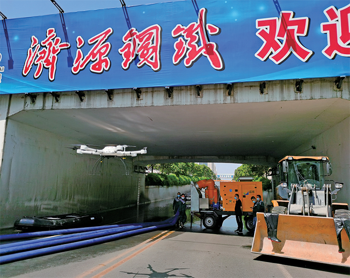 立交橋積水,無(wú)人機(jī)全面觀測(cè)水情。