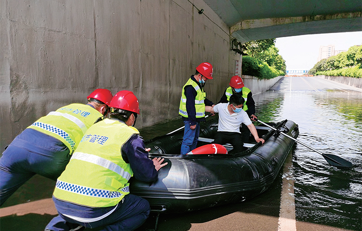 4月26日,示范區(qū)住建系統(tǒng)開(kāi)展城市內(nèi)澇應(yīng)急實(shí)戰(zhàn)演練。參演隊(duì)員圍繞防汛應(yīng)急疏散、立交橋積水救援排澇、地下空間防汛以及燃?xì)鈶?yīng)急搶修等項(xiàng)目進(jìn)行演練,提升隊(duì)伍防汛應(yīng)急處置能力和洪澇災(zāi)害實(shí)戰(zhàn)救援水平。(記者 何島 攝)