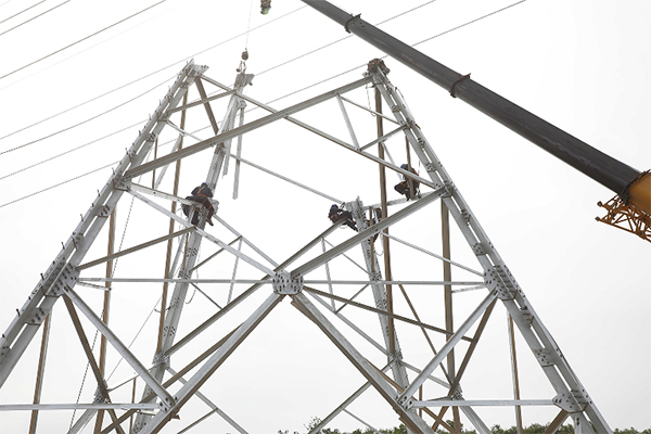 5月29日,濟(jì)源供電公司施工人員正在220千伏愚公變110千伏送出工程11號(hào)鐵塔處組建鐵塔。為了服務(wù)濟(jì)源山區(qū)經(jīng)濟(jì)發(fā)展,濟(jì)源供電公司組建220千伏愚公變電站。濟(jì)源公司優(yōu)化施工方案,克服地理環(huán)境惡劣、地勢(shì)險(xiǎn)竣等困難,按照“一基一方案、一基一布置、一基一交底”工作思路組織實(shí)施,全面落實(shí)工程安全、質(zhì)量、進(jìn)度各項(xiàng)要求,確保工程優(yōu)質(zhì)高效完成。張磊 攝