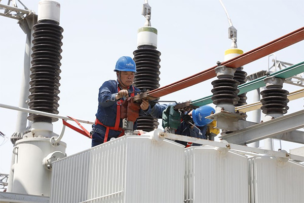 6月15日,濟源供電公司變電檢修人員正在110千伏泉興變電站對3號主變進行檢測。濟源公司按照“一停多用”的原則,規(guī)范檢修作業(yè)方式,提高檢修質(zhì)量,對變電設(shè)備同步開展主變例行試驗、一鍵順控安裝、母線橋檢修等工作,最大限度地減少停電時間。(張磊)