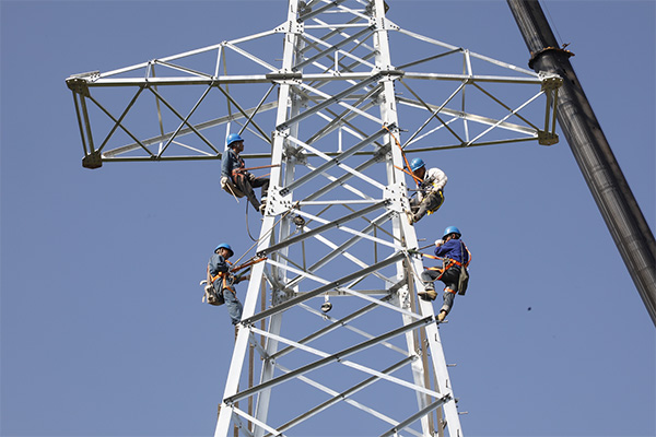 為了保障萬洋冶煉集團有限公司安全可靠用電,濟源供電公司強化安全生產(chǎn)管理,細化安全管理舉措,明確安全主體責(zé)任,為企業(yè)組建立第三電源。針對工期緊、任務(wù)重等情況,濟源公司倒排工期,實施白加黑、5+2的管理制度,以質(zhì)量管理促現(xiàn)場管理,促進工程質(zhì)量的整體提升,確保工程優(yōu)質(zhì)高效完成。圖為7月7日,濟源供電公司工程人員正在組建110千伏線路第12號鐵塔。張磊 攝