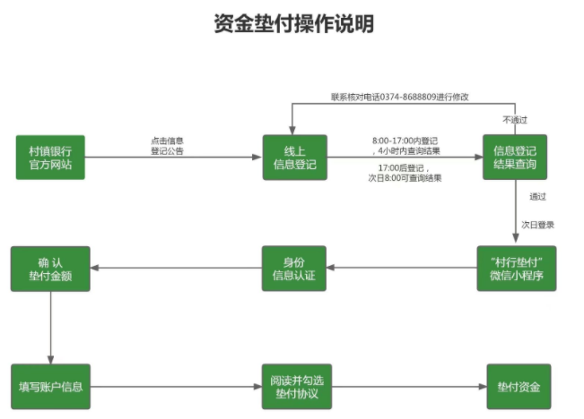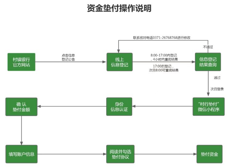 7月15日,河南4家村鎮(zhèn)銀行首批資金啟動墊付?!按逍袎|付”微信小程序已正式啟用,首批墊付對象為單家機構單人合并金額5萬元(含)以下的客戶。
