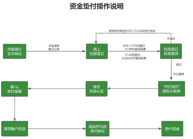 7月15日,禹州新民生村鎮(zhèn)銀行、上蔡惠民村鎮(zhèn)銀行、柘城黃淮村鎮(zhèn)銀行、開封新東方村鎮(zhèn)銀行發(fā)布資金墊付操作流程。根據操作流程,用戶完成信息登記,進行身份信息認證、確認墊付金額后,即可填寫賬戶信息,收到墊付資金。
