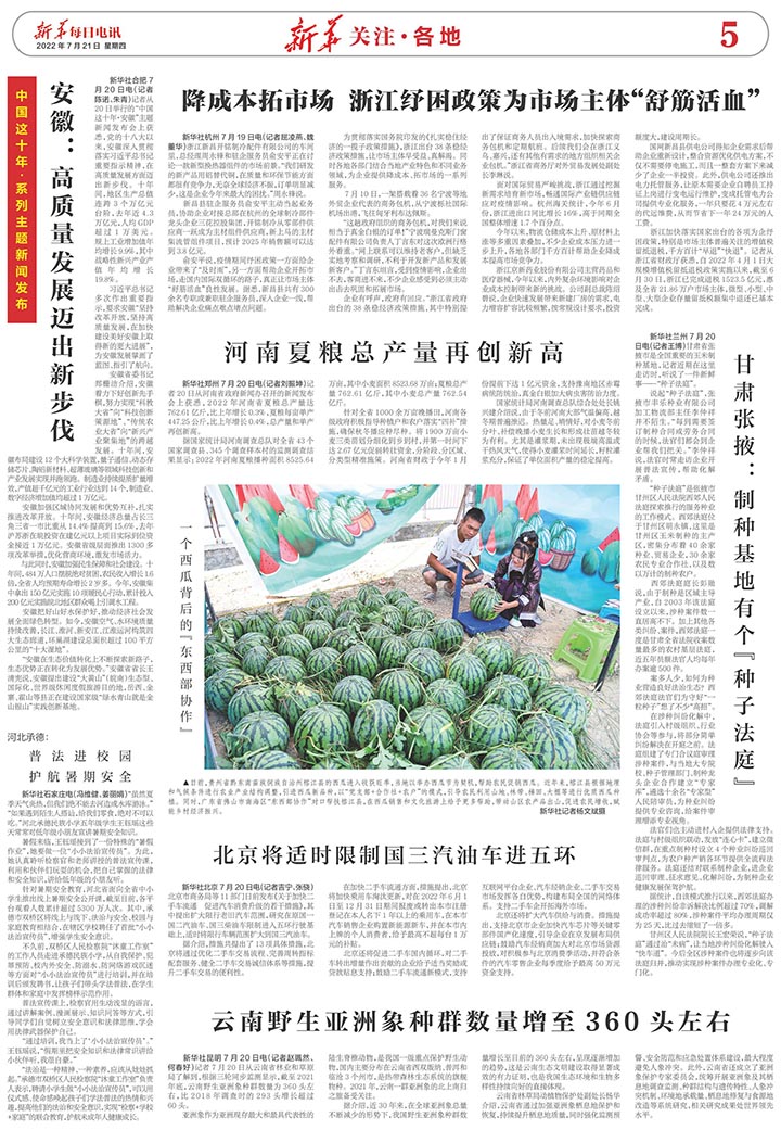 新華社鄭州7月20日電 記者20日從河南省政府新聞辦召開(kāi)的新聞發(fā)布會(huì)上獲悉,2022年河南省夏糧總產(chǎn)量達(dá)762.61億斤,比上年增長(zhǎng)0.3%,夏糧每畝單產(chǎn)447.25公斤,比上年增長(zhǎng)0.4%,總產(chǎn)量和單產(chǎn)再創(chuàng)新高。