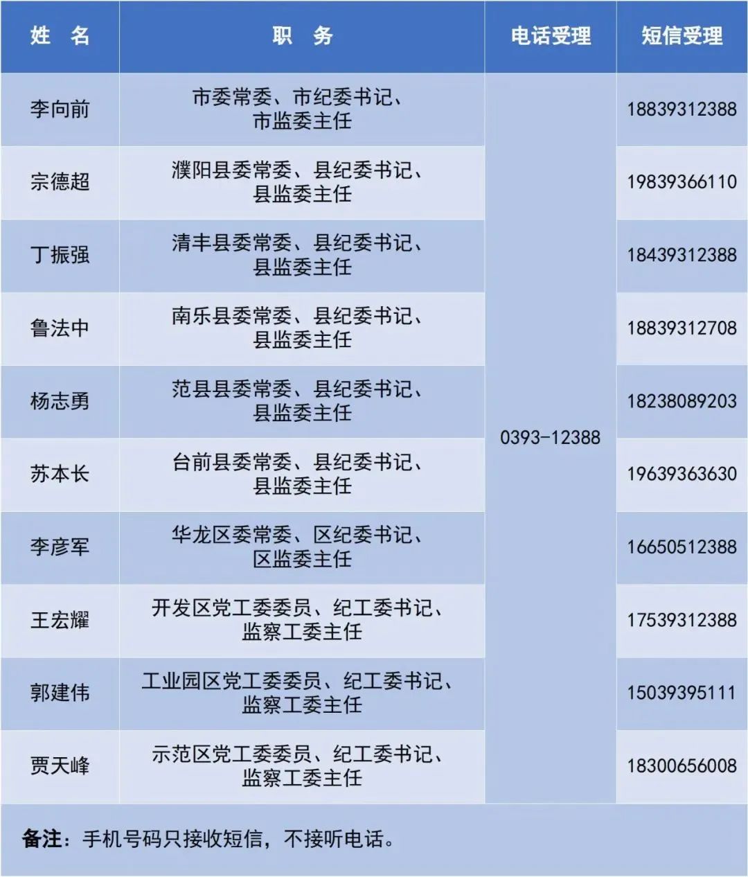“曬出濮陽市、縣兩級紀(jì)檢監(jiān)察機(jī)關(guān)主要負(fù)責(zé)同志的電話和手機(jī)號碼,這在當(dāng)?shù)厣袑偈状?,讓我們看到了濮陽對?yōu)化營商環(huán)境的高度重視,體現(xiàn)出極大的誠意和動真格的態(tài)度?!币晃诲ш柶髽I(yè)家說。