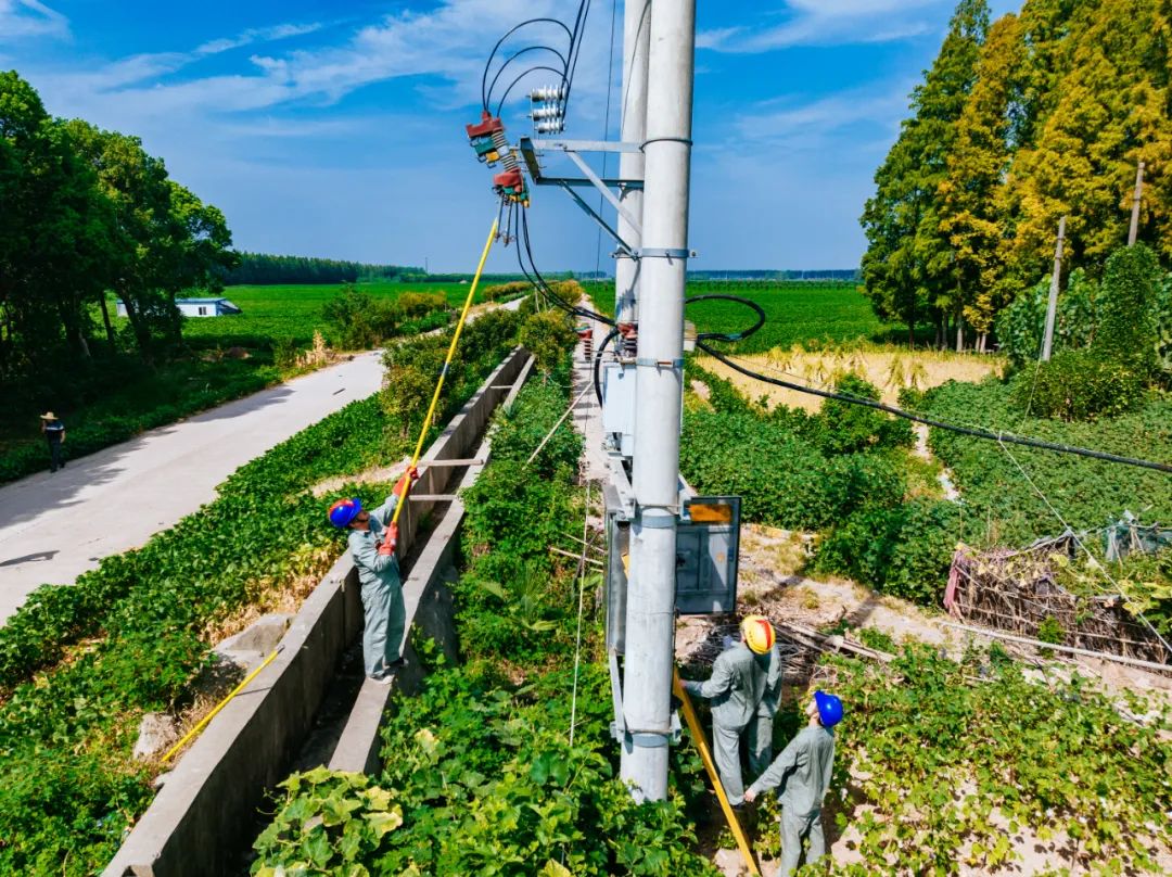 ▲8月16日,國(guó)網(wǎng)安徽廬江縣供電組織員工在白湖鎮(zhèn)開(kāi)展抗旱打水供電線路架設(shè)工作,保障當(dāng)?shù)剞r(nóng)戶夏季農(nóng)作用電穩(wěn)定。丁文康 攝