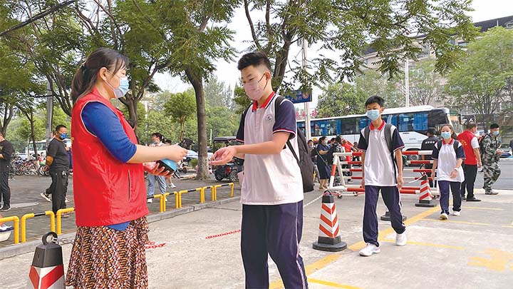 “老師好!”“同學(xué)好,請(qǐng)戴好口罩,進(jìn)行手部消毒……”校門口前,學(xué)生們穿著整齊的校服,佩戴著鮮艷的紅領(lǐng)巾,個(gè)個(gè)朝氣蓬勃,按指定路線保持一米的間隔,有序進(jìn)入校園。