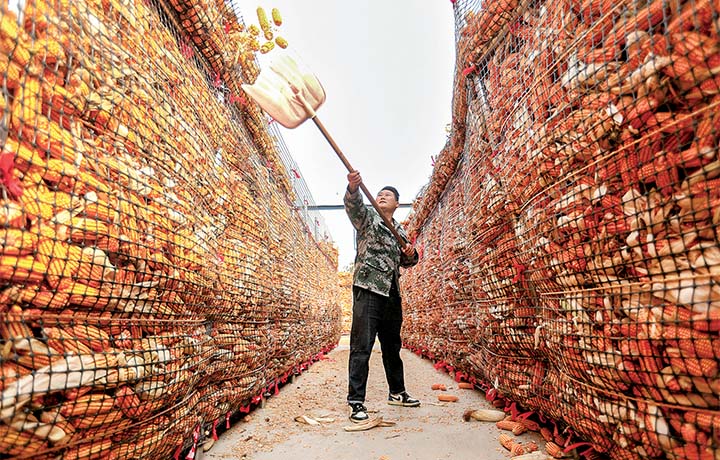 10月31日,濟源市富富康新農業(yè)植保專業(yè)合作社內,工人正在晾曬玉米。 記者 李楠 攝