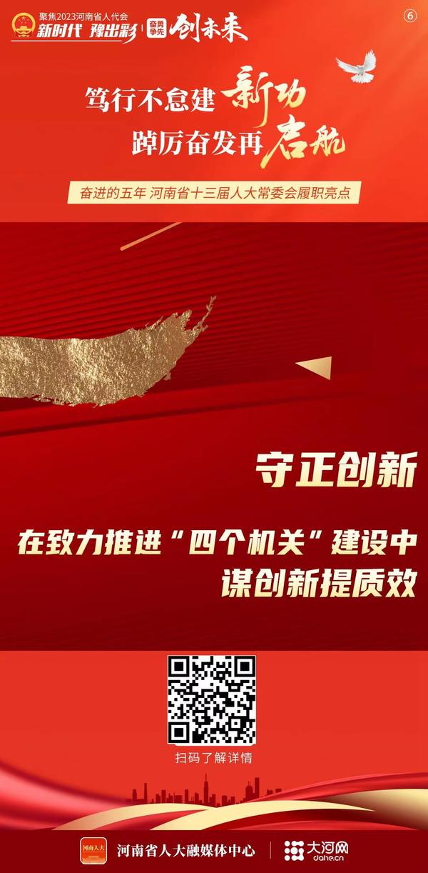 為省科學(xué)院專門(mén)立法,解決重建重振痛點(diǎn);確保一渠清水潤(rùn)北方,在法治軌道上推進(jìn)南水北調(diào)飲用水水源保護(hù);通過(guò)革命老區(qū)振興發(fā)展促進(jìn)條例,為革命老區(qū)插上騰飛的“翅膀”;出臺(tái)數(shù)字經(jīng)濟(jì)促進(jìn)條例,加快“數(shù)字河南”建設(shè)……