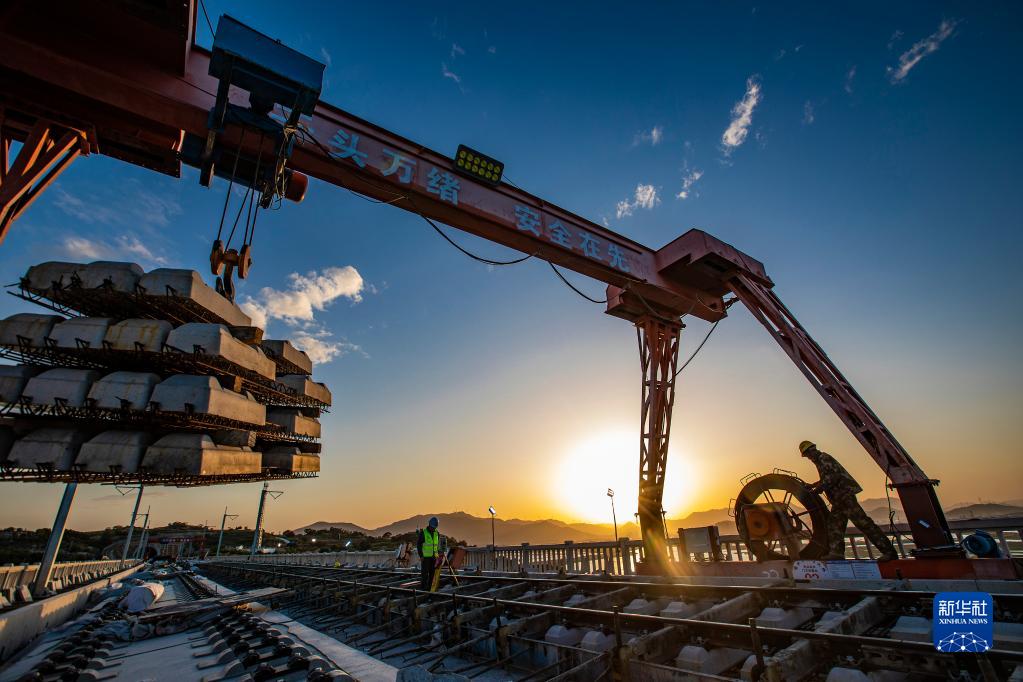工人在新建福(州)廈(門)鐵路湄洲灣跨海大橋施工(2022年4月8日攝)。新華社記者 周義 攝