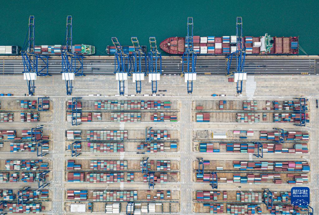海南洋浦國際集裝箱碼頭一景(2022年11月5日攝,無人機(jī)照片)。新華社記者 蒲曉旭 攝