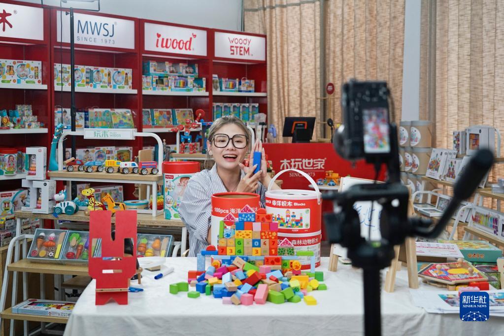 浙江云和一家玩具公司的主播在直播帶貨(2022年6月15日攝)。新華社記者 林光耀 攝