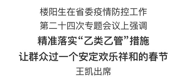 1月18日,省委疫情防控工作第二十四次專題會(huì)議召開,對(duì)新冠病毒感染“乙類乙管”工作進(jìn)行階段性總結(jié),分析當(dāng)前防控形勢,就做好新階段疫情防控工作再安排再部署。省委書記樓陽生主持會(huì)議并講話,省長王凱作具體部署。