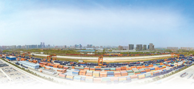 繁忙的鄭州國際陸港。 聶冬晗攝(人民視覺)