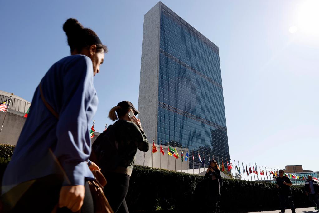 2019年10月14日,人們從位于紐約的聯(lián)合國總部前走過。新華社記者 李木子 攝