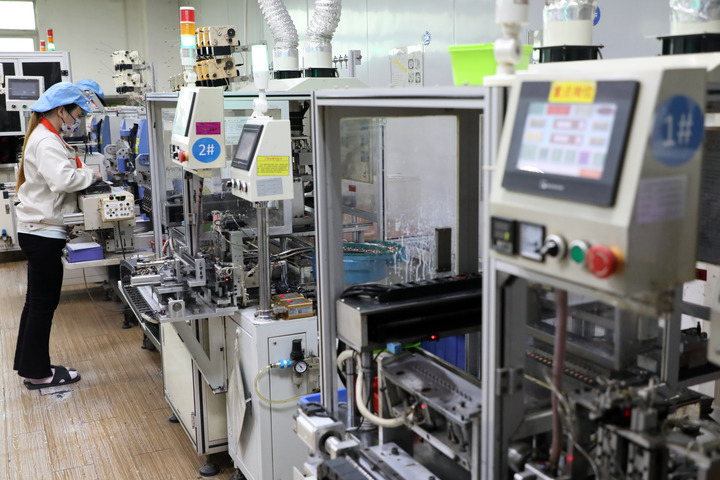 2月9日,廣東東莞市維斗科技股份有限公司員工在生產(chǎn)線作業(yè)。新華社記者黃國保 攝