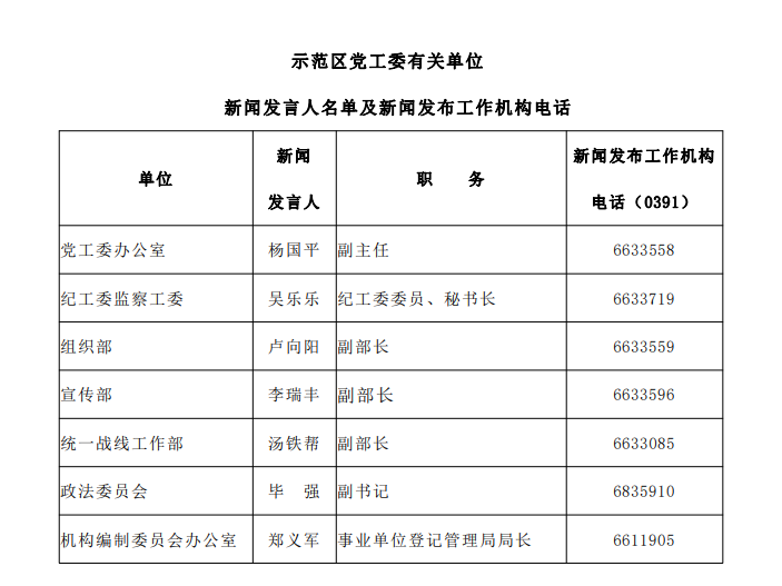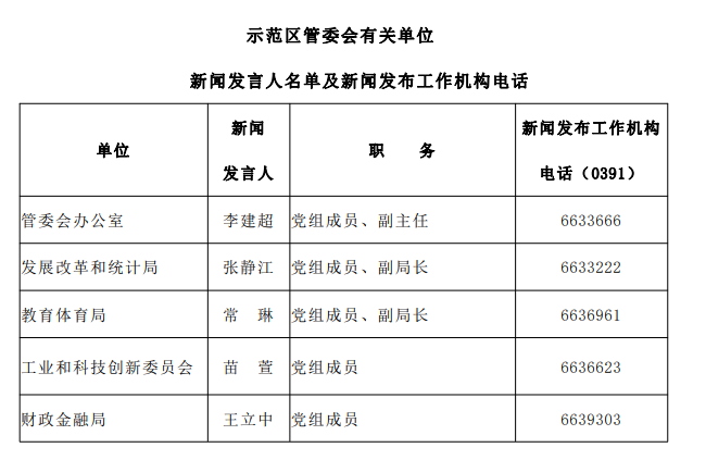 2023示范區(qū)有關(guān)單位新聞發(fā)言人名單